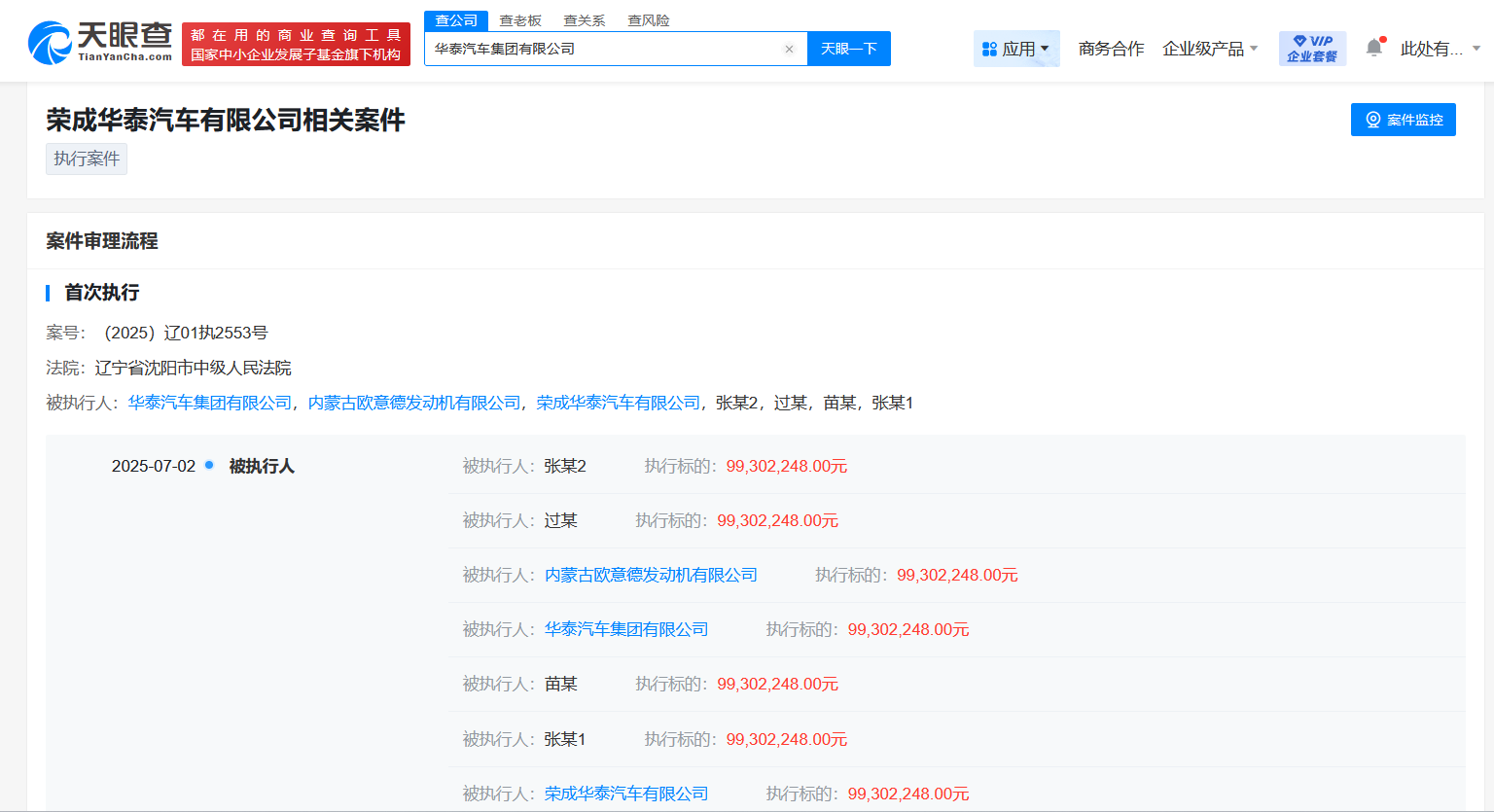 天眼查法律诉讼信息显示,近日,华泰汽车集团有限公司新增2条被执行人信息,执行标的合计5.06亿余元,被执行人还包括荣成华泰汽车有限公司、张秀根等,执行法院为北京市第二中级人民法院、辽宁省沈阳市中级人民法院。