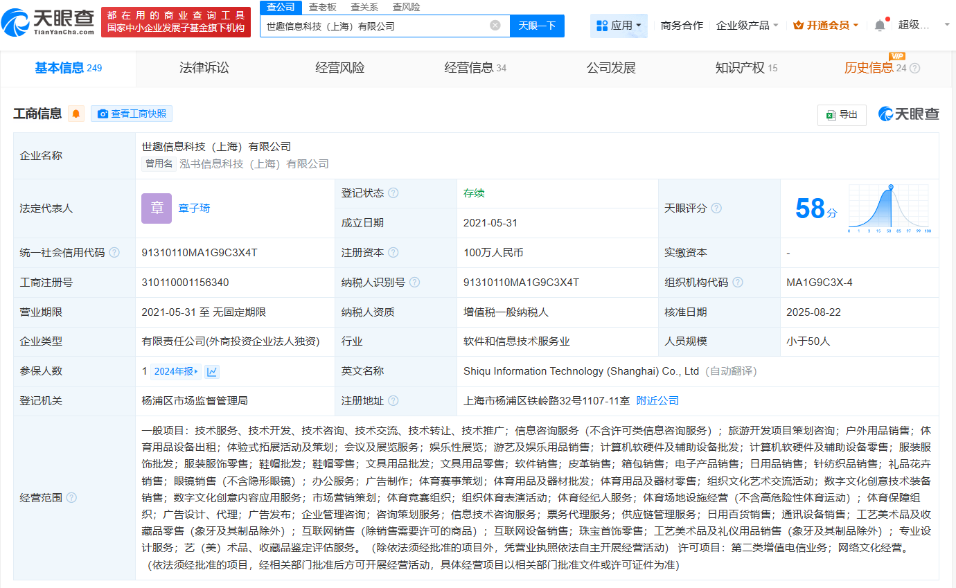 天眼查工商信息显示,近日,世趣信息科技(上海)有限公司发生变更,苏畅卸任法定代表人、董事并退出股东行列,新增小红书科技有限公司全资持股,章子琦任法定代表人、董事。