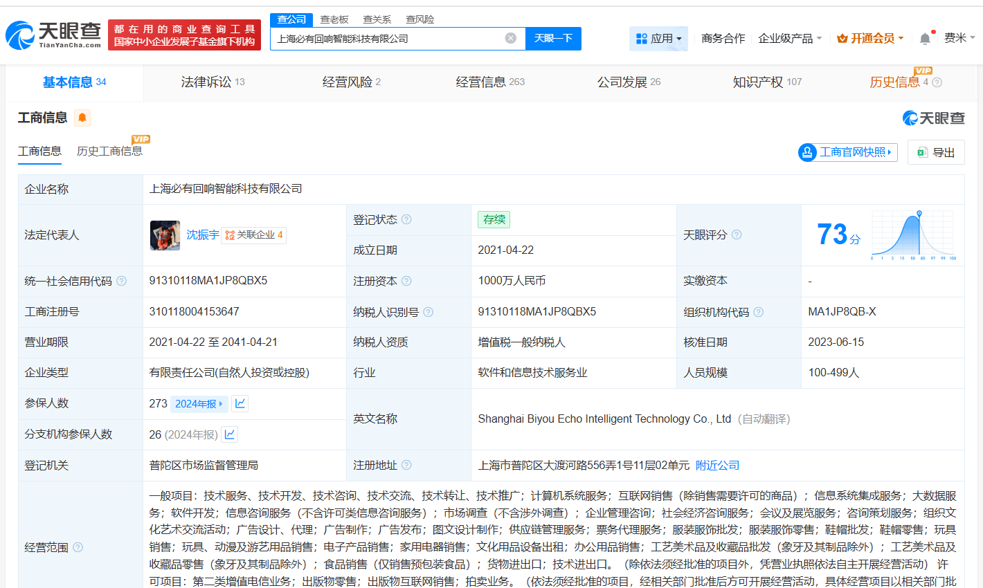 天眼查App显示,千岛App关联企业上海必有回响智能科技有限公司成立于2021年4月,法定代表人为沈振宇,注册资本1000万人民币,经营范围包括计算机系统服务、互联网销售、信息系统集成服务等,由沈振宇、西藏御珠企业管理有限公司、李论共同持股。法律诉讼信息显示,该公司曾涉及信息网络买卖合同纠纷、买卖合同纠纷、产品销售者责任纠纷等案件。此外,该公司曾因违反《出版物市场管理规定》被罚。