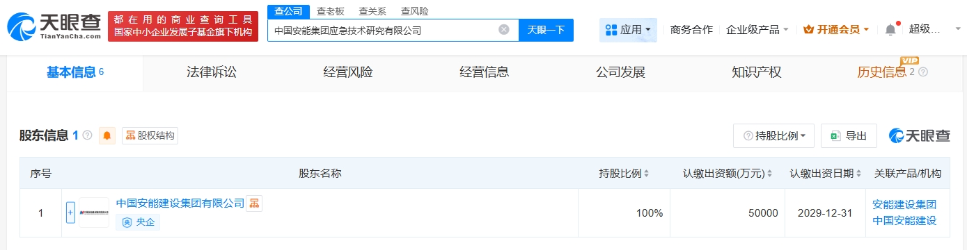 天眼查App显示,近日,中国安能集团应急技术研究有限公司成立,法定代表人为刘其森,注册资本5亿人民币,经营范围包括工程和技术研究和试验发展、自然科学研究和试验发展、智能机器人的研发、智能控制系统集成等。股东信息显示,该公司由中国安能建设集团有限公司全资持股。