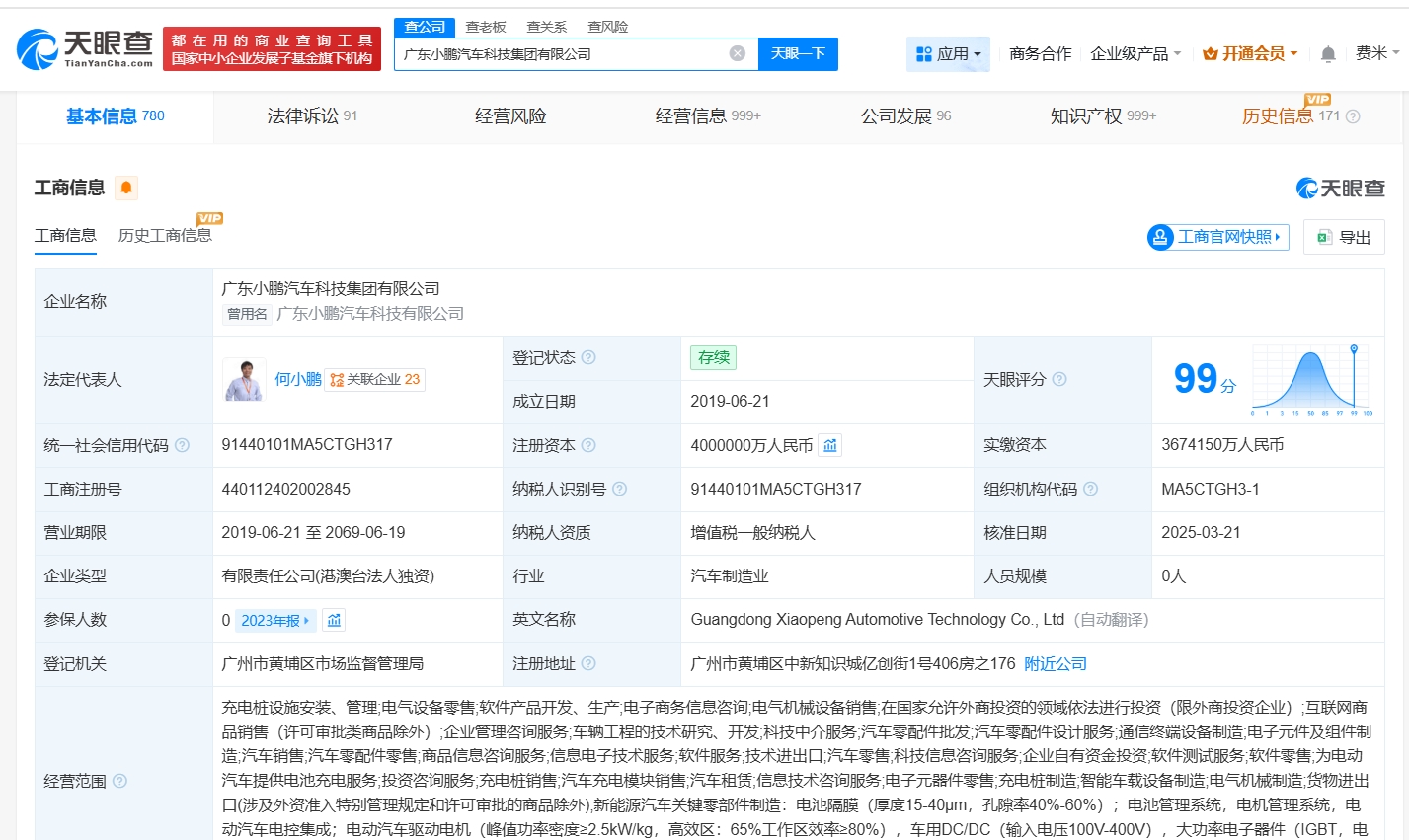 天眼查知识产权信息显示,今年4月,广东小鹏汽车科技集团有限公司申请注册“铁人”商标,国际分类为科学仪器,当前商标状态为初审公告。