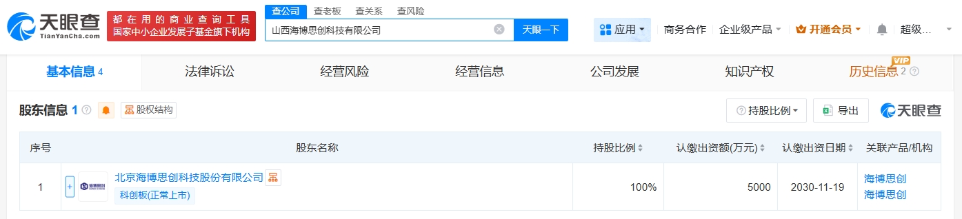 天眼查App显示,近日,山西海博思创科技有限公司成立,法定代表人为张猛,注册资本5000万人民币,经营范围包括电池制造、电力电子元器件制造、电池零配件生产、机械电气设备制造、智能基础制造装备制造等。股东信息显示,该公司由海博思创(688411)全资持股。