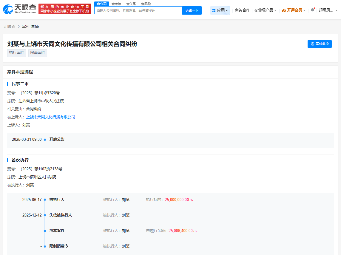 天眼查天眼风险信息显示,近日,刘世宇(MLXG)被限制高消费,同时因违反财产报告制度,被上饶市信州区人民法院列为失信被执行人(老赖)。案件流程信息显示,此前,刘世宇已因此案被执行2500万元。