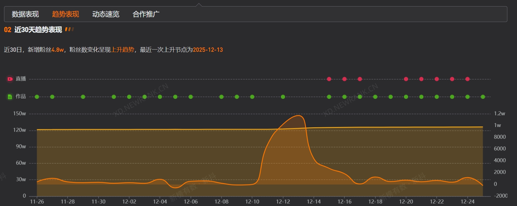 第三方数据显示,截至12月26日9时,景德镇(鸡排哥)视频平台粉丝数为126.3万,近30日涨粉4.8万。商业化水平显示,其1-20s、21-60s、60s以上视频广告报价均为10元。