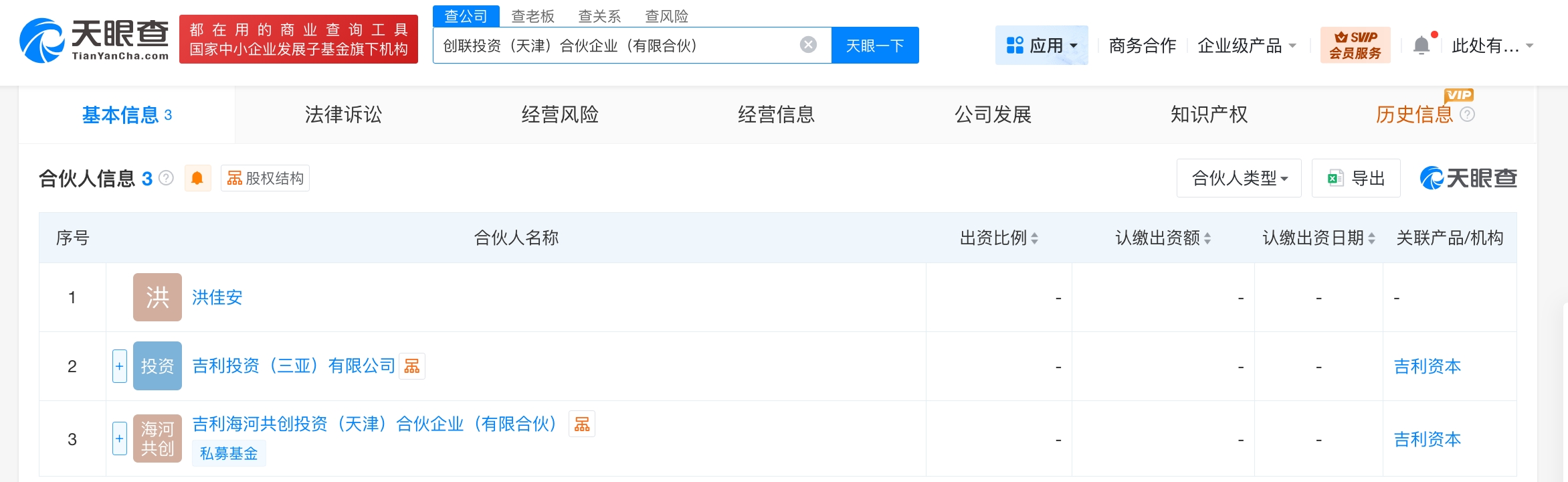 天眼查App显示,近日,创联投资(天津)合伙企业(有限合伙)成立,执行事务合伙人为吉利投资(三亚)有限公司,出资额5040万人民币,经营范围含以自有资金从事投资活动。合伙人信息显示,该合伙企业由洪佳安、吉利投资(三亚)有限公司、吉利海河共创投资(天津)合伙企业(有限合伙)共同出资。