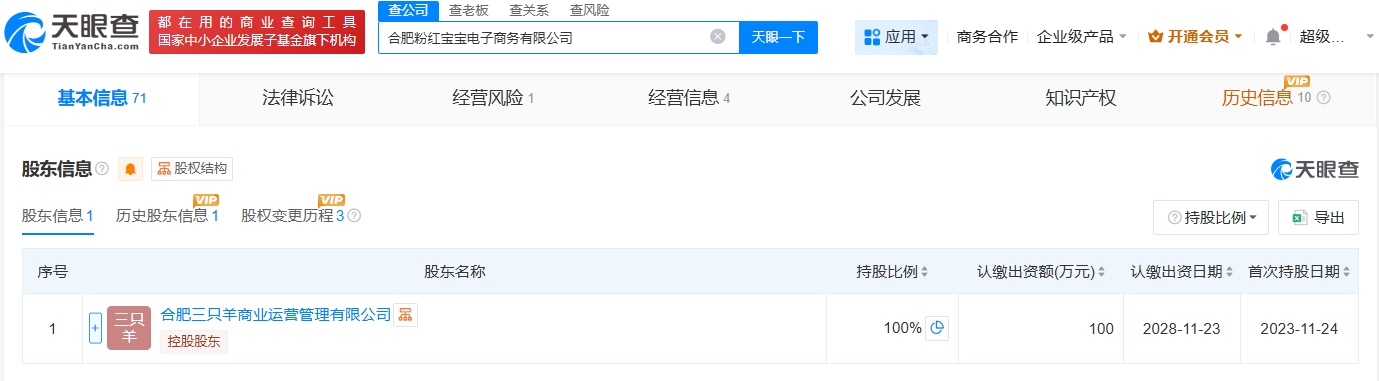 该公司成立于2023年11月,法定代表人为李莹,注册资本100万人民币,经营范围包括个人商务服务、个人互联网直播服务、组织文化艺术交流活动、文化娱乐经纪人服务等。股东信息显示,该公司由合肥三只羊商业运营管理有限公司全资持股。值得注意的是,三只羊旗下合肥欧普三羊科技有限公司也于近期注销。