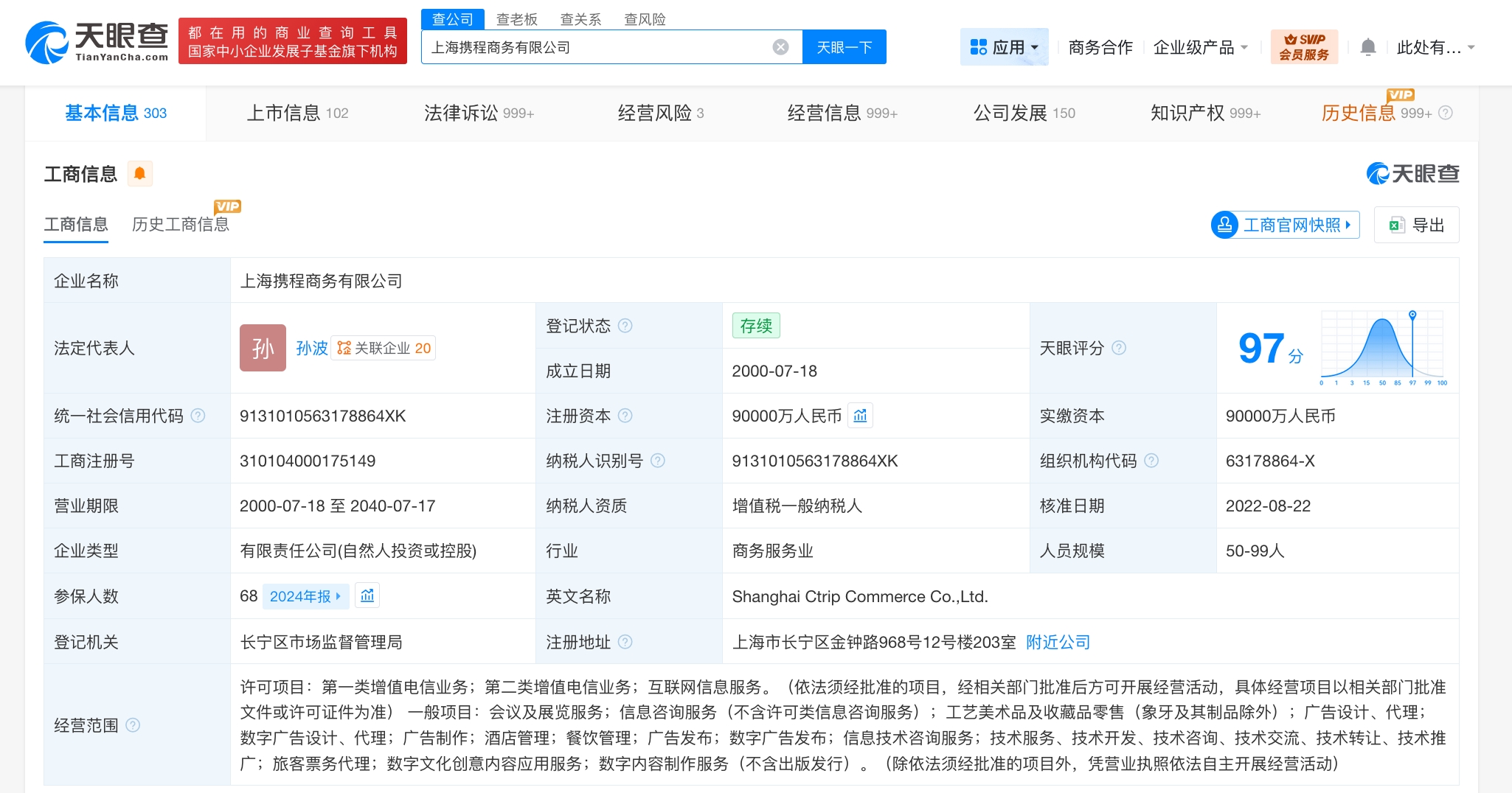 天眼查工商信息显示,携程集团有限公司于2021年2月成立于开曼群岛,公司类别为注册非香港公司。此外,携程集团在内地关联主体上海携程商务有限公司成立于2000年7月,法定代表人为孙波,注册资本9亿人民币,经营范围含互联网信息服务、会议及展览服务、信息咨询服务、酒店管理、餐饮管理等。股东信息显示,该公司由孙波、孙茂华共同持股。对外投资信息显示,该公司直接持股多家企业,包括携程金融科技(上海)有限公司、重庆携程小额贷款有限公司、上海机场国际旅行社有限公司等共同持股。此外,携程旗下还关联携程投资(上海)有限公司、携程计算机技术(上海)有限公司等多家公司。天眼风险信息显示,该公司现存多条法律诉讼信息,案由涉及不正当竞争纠纷、网络服务合同纠纷等。