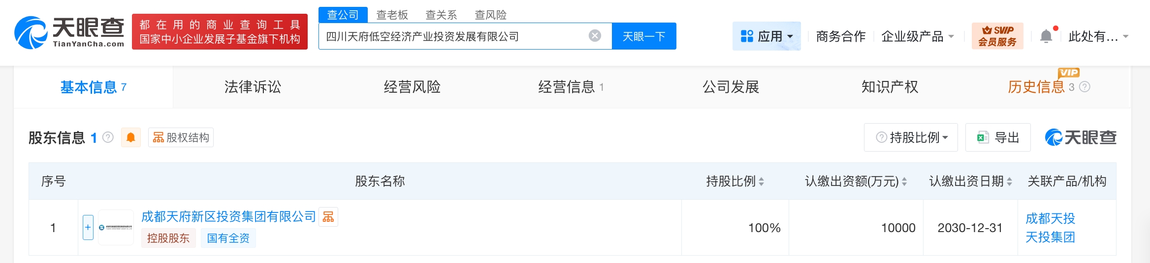 天眼查工商信息显示,近日,四川天府低空经济产业投资发展有限公司成立,法定代表人为赵雨桐,注册资本1亿人民币,经营范围含自有资金投资的资产管理服务、航空运营支持服务、航空商务服务、人工智能行业应用系统集成服务、信息咨询服务、卫星通信服务、智能无人飞行器制造等。股东信息显示,该公司由成都天府新区投资集团有限公司全资持股。