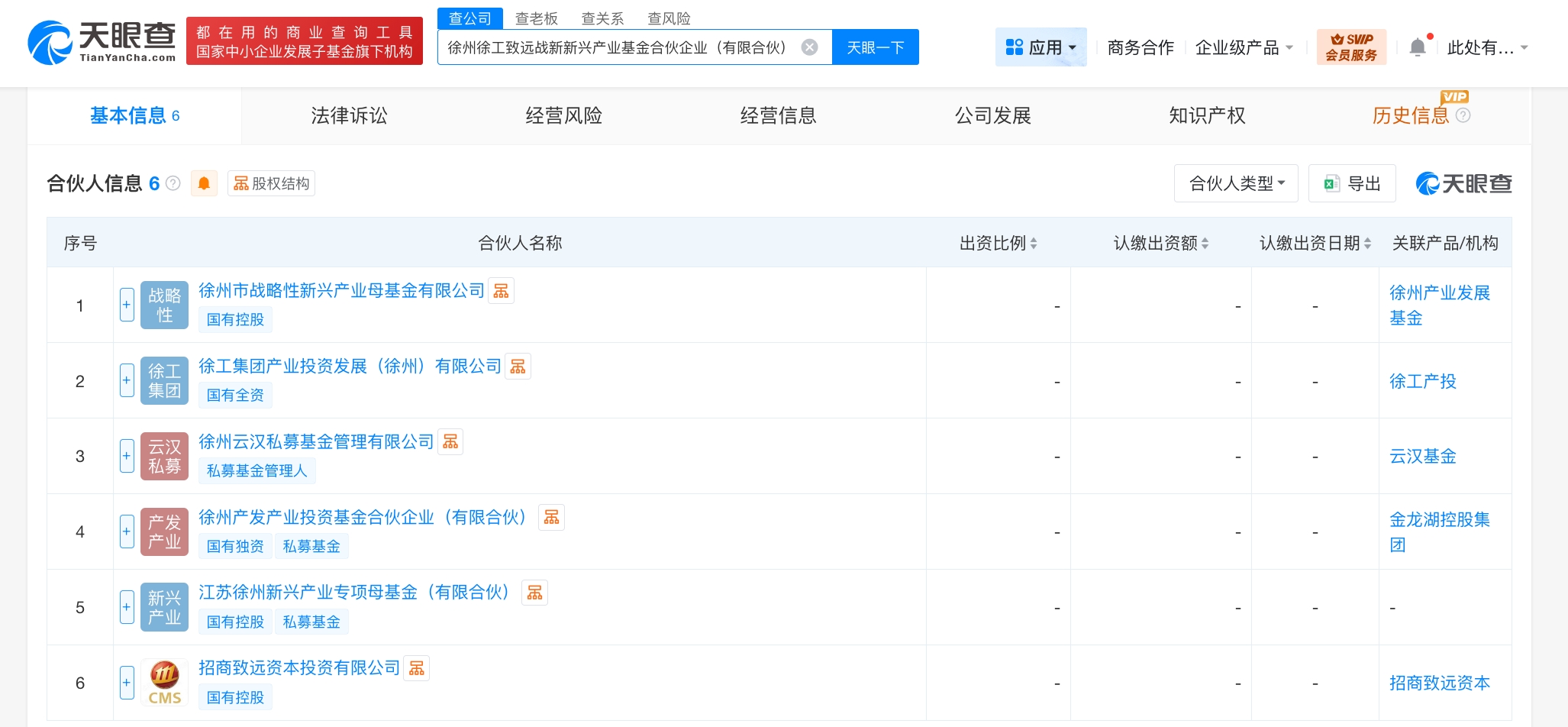 天眼查工商信息显示,近日,徐州徐工致远战新新兴产业基金合伙企业(有限合伙)成立,执行事务合伙人为招商致远资本投资有限公司,出资额10亿人民币,经营范围为以私募基金从事股权投资、投资管理、资产管理等活动。合伙人信息显示,该基金由徐州市战略性新兴产业母基金有限公司、徐工集团产业投资发展(徐州)有限公司、徐州云汉私募基金管理有限公司、招商证券旗下招商致远资本投资有限公司等共同出资。