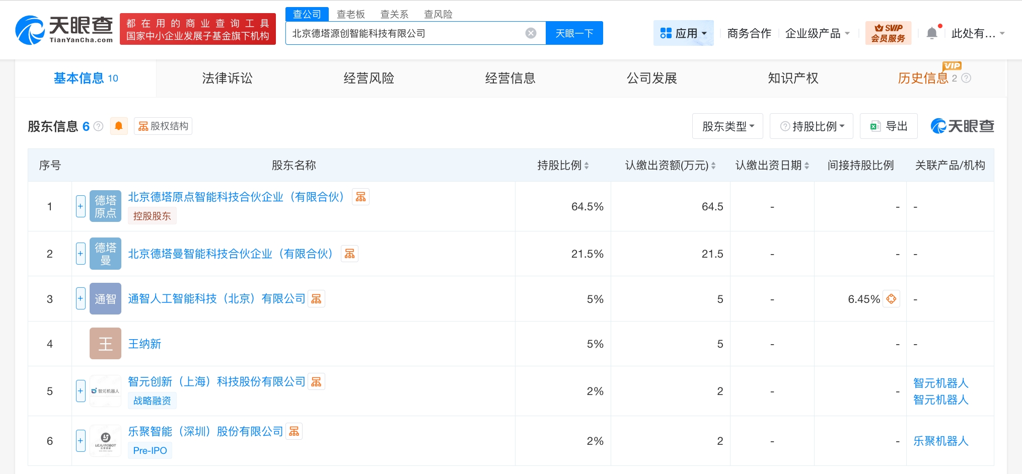 天眼查工商信息显示,近日,北京德塔源创智能科技有限公司成立,法定代表人为马晓健,注册资本100万人民币,经营范围含软件销售、信息技术咨询服务、人工智能应用软件开发、计算机系统服务、智能机器人的研发、智能机器人销售、工业机器人制造、人工智能基础软件开发、信息咨询服务等。股东信息显示,该公司由北京德塔原点智能科技合伙企业(有限合伙)、通智人工智能科技(北京)有限公司、智元创新(上海)科技股份有限公司等共同持股。