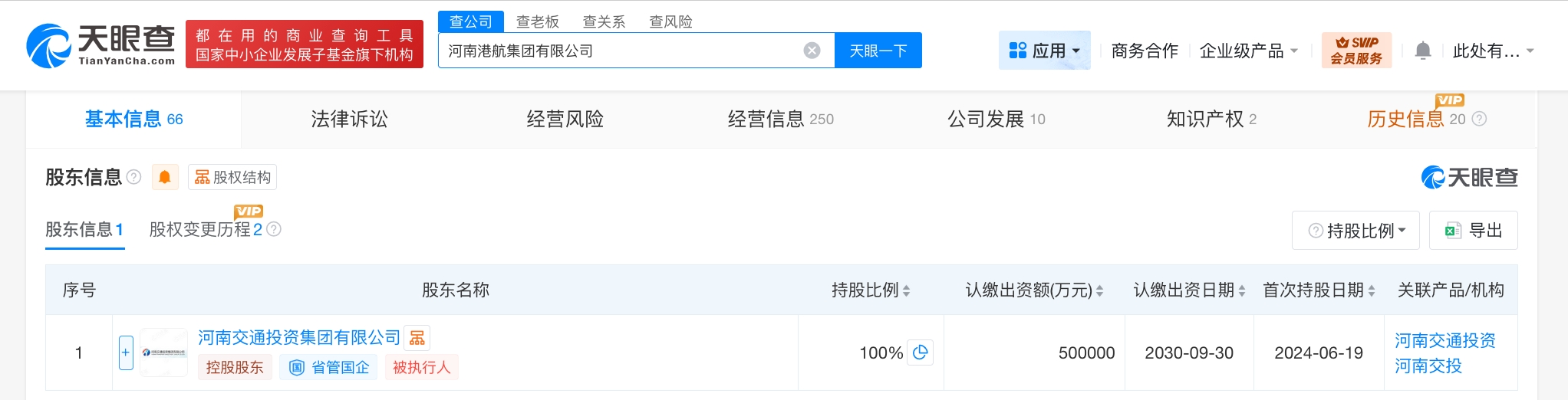 该公司成立于2024年6月,法定代表人为吕维前,经营范围含港口经营、建设工程施工、国际道路货物运输、道路货物运输、国营贸易管理货物的进出口、水路普通货物运输、港口理货、船舶港口服务、装卸搬运等,由河南交通投资集团有限公司全资持股。