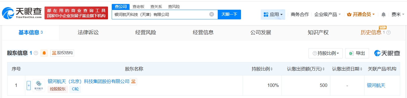 天眼查App显示,近日,银河航天科技(天津)有限公司成立,法定代表人为徐鸣,注册资本500万人民币,经营范围包括卫星移动通信终端制造、卫星移动通信终端销售、卫星通信服务等,由银河航天(北京)科技集团股份有限公司全资持股。