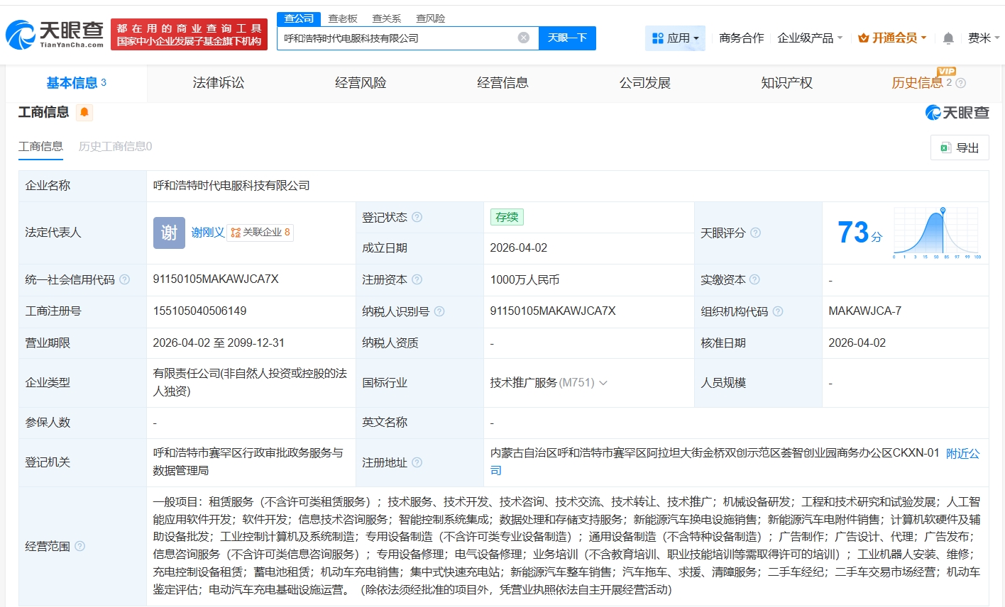 天眼查App显示,近日,呼和浩特时代电服科技有限公司成立,法定代表人为谢刚义,注册资本1000万人民币,经营范围包括新能源汽车换电设施销售、蓄电池租赁、电动汽车充电基础设施运营等,由宁德时代(300750)旗下时代电服科技有限公司全资持股。