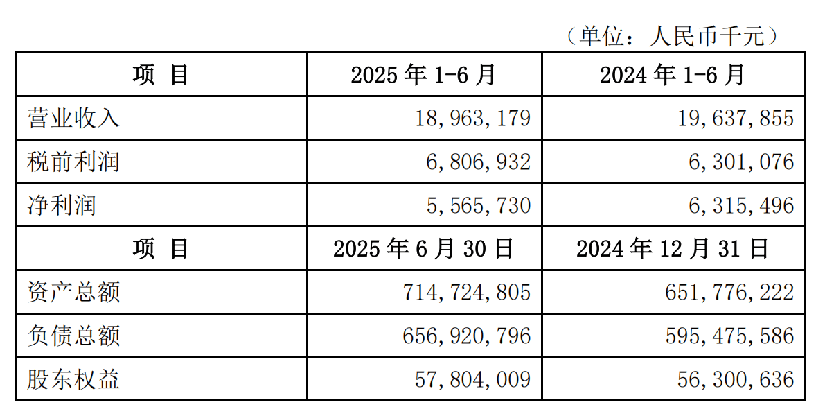 2025年上半年,微众银行实现营收189.63亿元,较上年同期减少6.75亿元,降幅约3.44%;实现净利润55.66亿元,较上年同期减少近7.5亿元,降幅约11.86%。