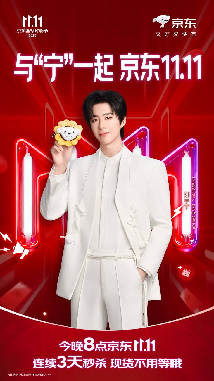 京东11.11惊喜大使也将迎来新成员。刘宇宁作为京东新锐代言人、京东11.11惊喜大使,将为消费者带来更多新奇好物与惊喜福利。