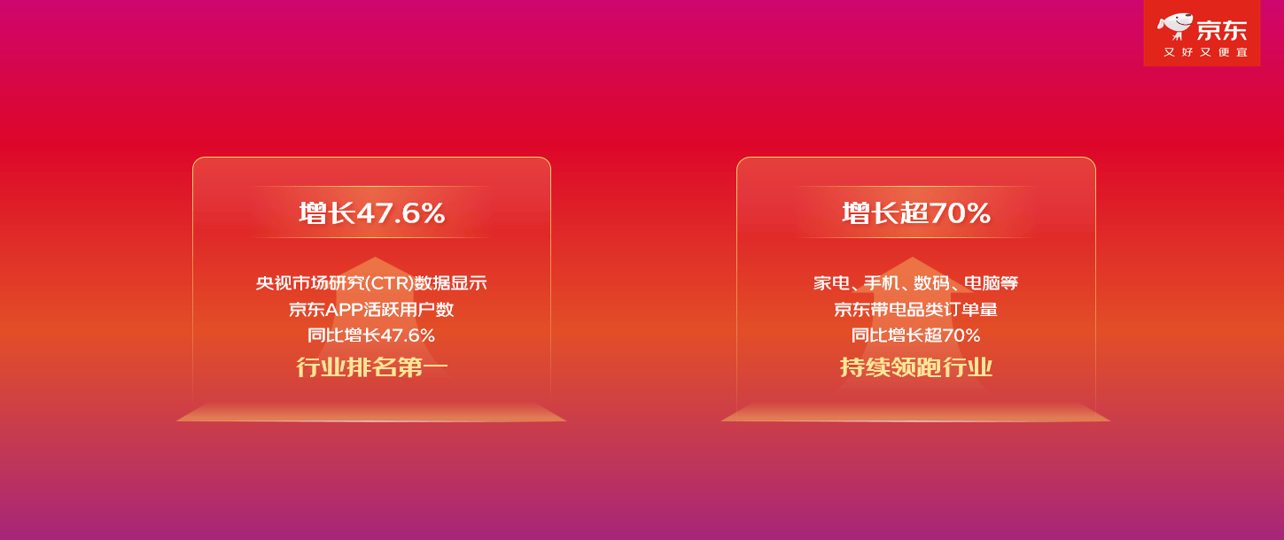 健康消费成为市场新热点。体重管理用药、补益用药的成交新用户数同比增长超5倍;以燕窝、阿胶为代表的传统滋补品和鱼油、赖氨酸等现代营养补充剂,以及动态血糖仪、呼吸机等健康器械的成交额同比增长超2倍。新能源相关品类持续高速增长,自营电动自行车成交额同比增长500%,新能源汽车充电桩增长102%。京东全球购服饰品类成交额同比增长300%,浪琴品牌同比增长超10倍,百年品牌STANLEY、白鹤分别同比增长40倍、5.7倍。