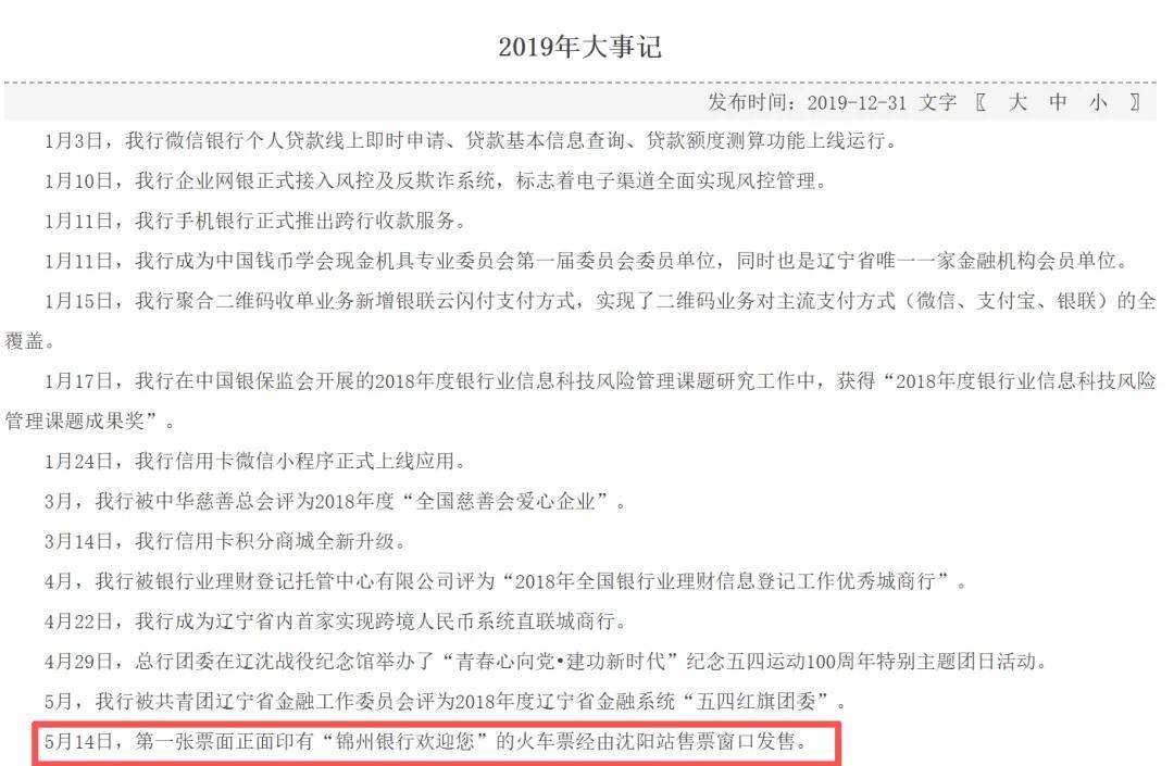2019年5月14日,一张印有“锦州银行欢迎您”的火车票,在沈阳站售票窗口首次发售。在一年多以前,锦州银行与当地铁路局合作,冠名了呼和浩特东—秦皇岛的K56次车。