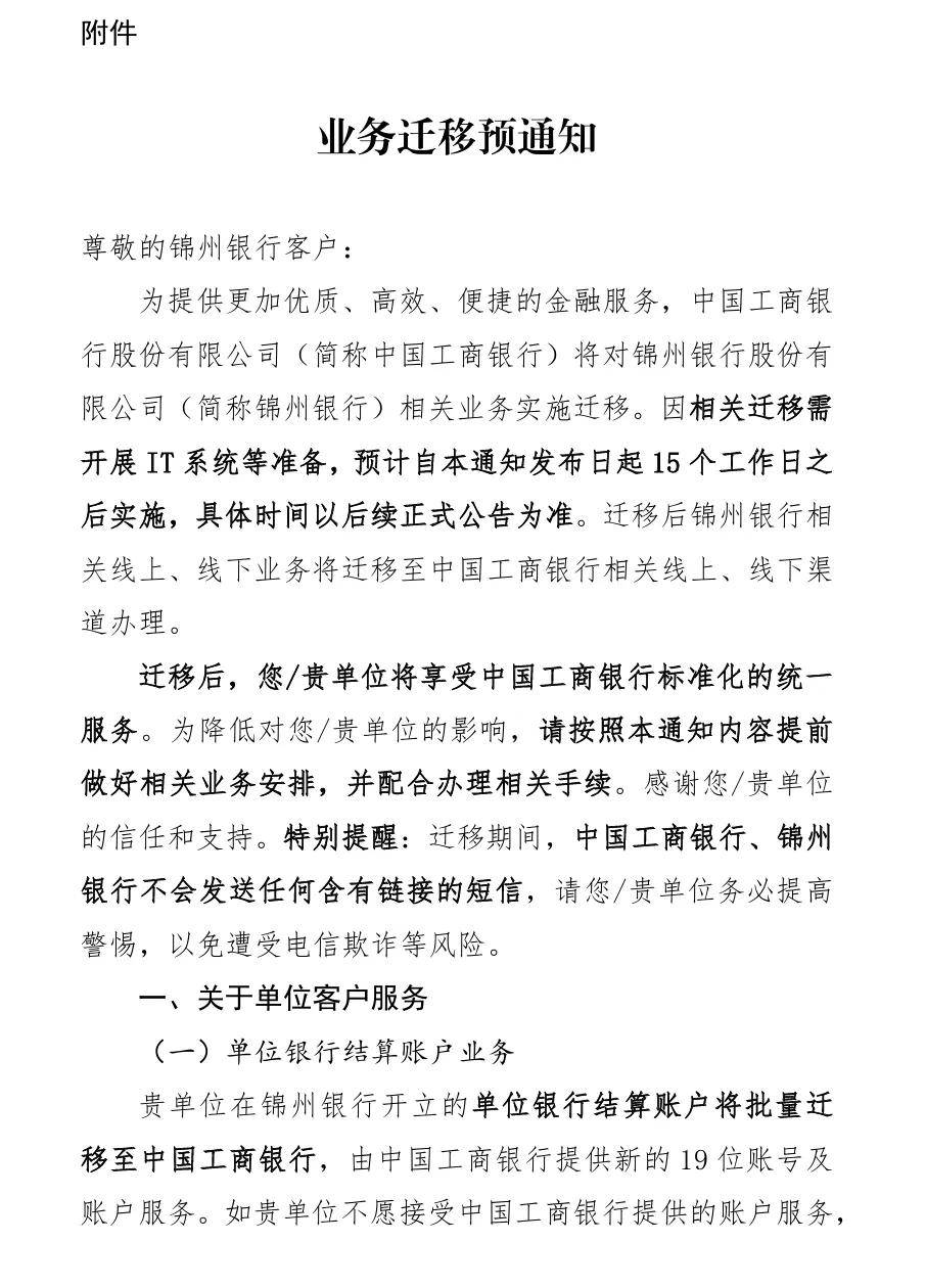 这意味着,从今往后,所有锦州银行的客户,将自动迁移到“宇宙行”,存款、理财、贷款等均由工商银行全权负责。