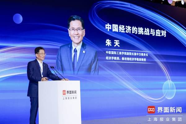 中欧国际工商学院副院长兼中方教务长、经济学教授、桑坦德经济学教席教授朱天在主旨演讲中就当前中国经济形势发表见解。他指出,中国经济虽展现出增长韧性,但持续一段时间的价格下行压力是当前核心挑战。