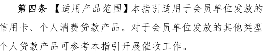 对比2021年的《信用卡催收工作指引》,该份《指引》最显著的变化是适用范围从信用卡延伸至涵盖银行消费贷、消费金融公司等在内的所有个人消费信贷产品,以及会员单位发放的其他类型个人贷款产品,从而构建起完整的市场规范框架。